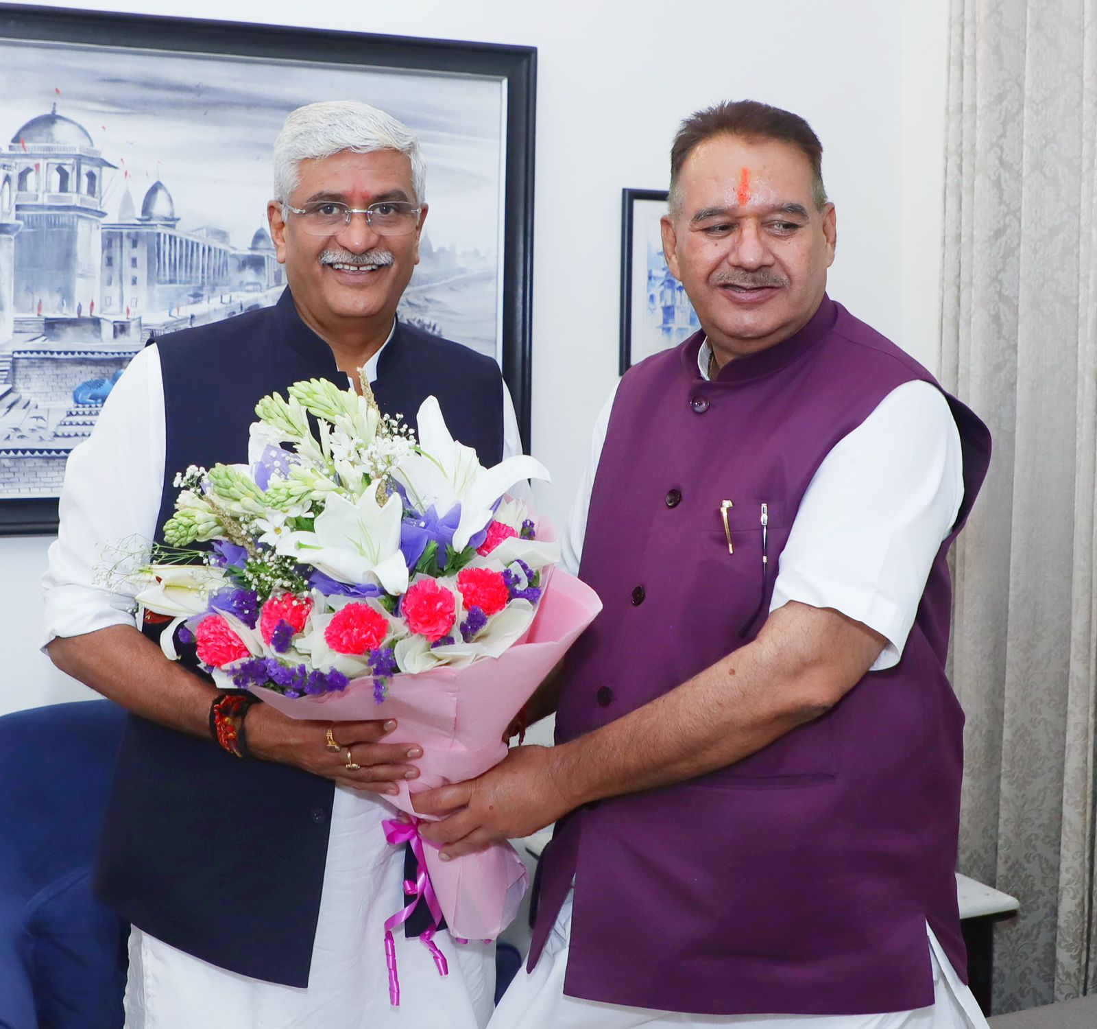 देहरादून। प्रदेश के कृषि एवं ग्रामीण विकास मंत्री गणेश जोशी ने नई दिल्ली में जोधपुर लोकसभा से सांसद एवं केंद्रीय पर्यटन एवं संस्कृति मंत्री गजेन्द्र सिंह शेखावत से उनके आवास पर शिष्टाचार भेंट कर उन्हे पुनः केंद्रीय मंत्री का दायित्व मिलने पर बधाई एवं शुभकामनाएं भी दी। इस दौरान पर मंत्री गणेश जोशी ने केंद्रीय पर्यटन मंत्री गजेन्द्र सिंह शेखावत से चार धाम में पर्यटन सुविधाओं के लिए केंद्र सरकार से सहयोग करने तथा उत्तराखण्ड में टूरिस्ट डेस्टिनेशन का दायरा बढ़ाने का अनुरोध किया गया।