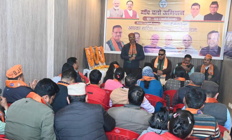 देहरादून। कैबिनेट मंत्री गणेश जोशी ने भारतीय जनता पार्टी के “गांव चलो अभियान” कार्यक्रम के तहत रविवार को मसूरी विधानसभा क्षेत्र के गुनियालगांव बूथ संख्या 109 जमोलीवाला में बूथ समिति और पन्ना प्रमुखों की बैठक ली। कैबिनेट मंत्री गणेश जोशी ने सर्वप्रथम बूथ पर दीवार लेखन किया और पार्टी कार्यकर्ताओं से सरल ऐप तथा नमो ऐप भी डाउनलोड करवाये। बैठक के दौरान काबीना मंत्री ने बूथ पर रहने वाले लाभार्थियों से जन संवाद किया और उनके अनुभवों को सुना। जिसमें आयुष्मान योजना, जन-धन, उज्जवला आदि योजनाओं के लाभार्थी उपस्थित रहे। कैबिनेट मंत्री ने ग्रामीण क्षेत्र में विभिन्न महिला स्वयं सहायता समूह की महिलाओं से भी संवाद किया और समूह के बारे में विस्तार से जानकारीली।