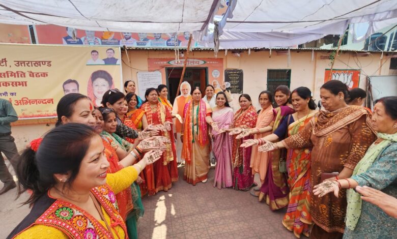 देहरादून। चैत्र नवरात्रि के पावन पर्व पर भाजपा महिला मोर्चा ने कमल मेहंदी अभियान की शुरुआत की है भाजपा महानगर कार्यालय में कार्यक्रम का आयोजन किया गया जिसमें भाजपा महिला मोर्चे के कई पदाधिकारियों और कार्यकर्ताओं ने हिस्सा लिया। भाजपा महिला मोर्चा के प्रदेश अध्यक्ष आशा नौटियाल का कहना है कि पूरे प्रदेश में कमल मेहंदी लगाने के अभियान की शुरुआत हुई है उनका कहना है कि जगह-जगह कार्यक्रम का आयोजन किया जा रहा है। जिसमें पदाधिकारी कार्यकर्ता हिस्सा ले रहे हैं साथ ही स्थानीय महिलाओं को भी आमंत्रित किया जा रहा है। उनका कहना है कि 17 अप्रैल तक प्रदेश में इसी तरह के कार्यक्रम का आयोजन किया जाएग।